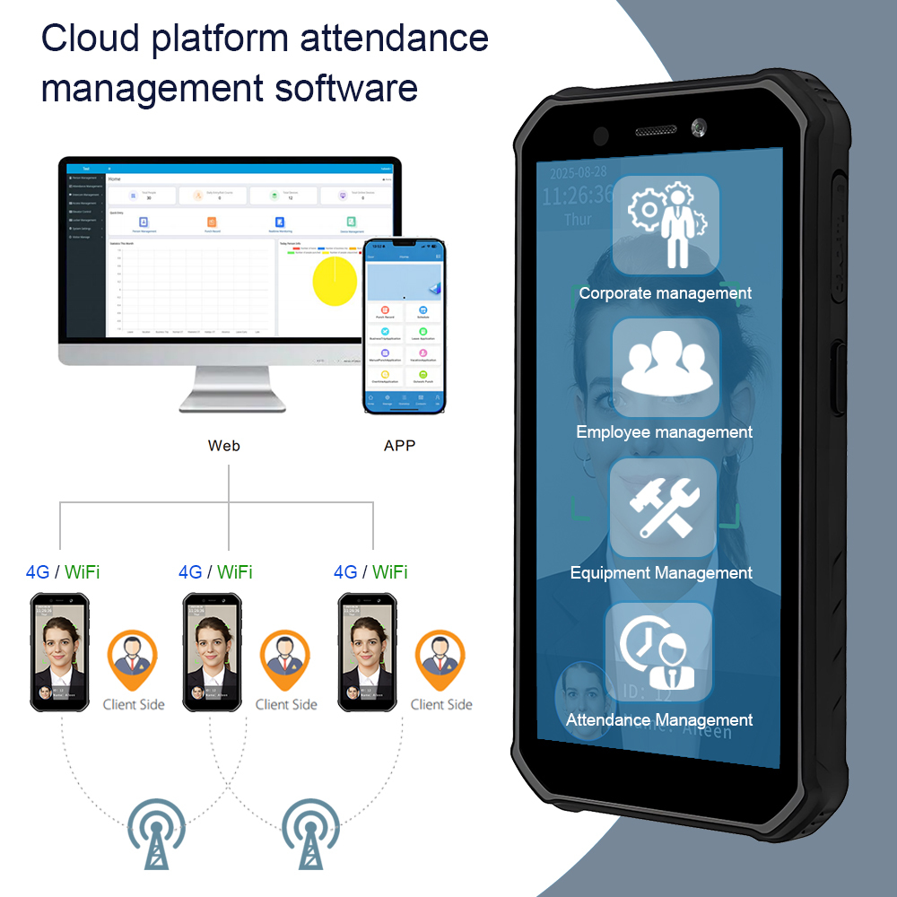 نظام الحضور الزمني المحمول محطة التعرف على الوجه البيومترية الأندرويد