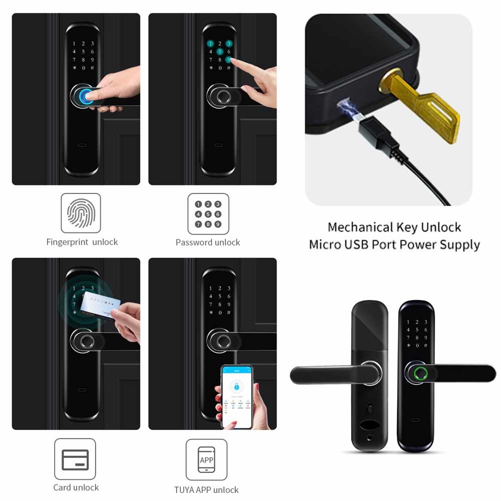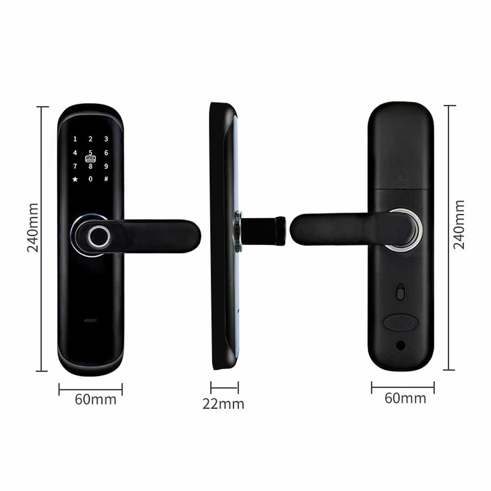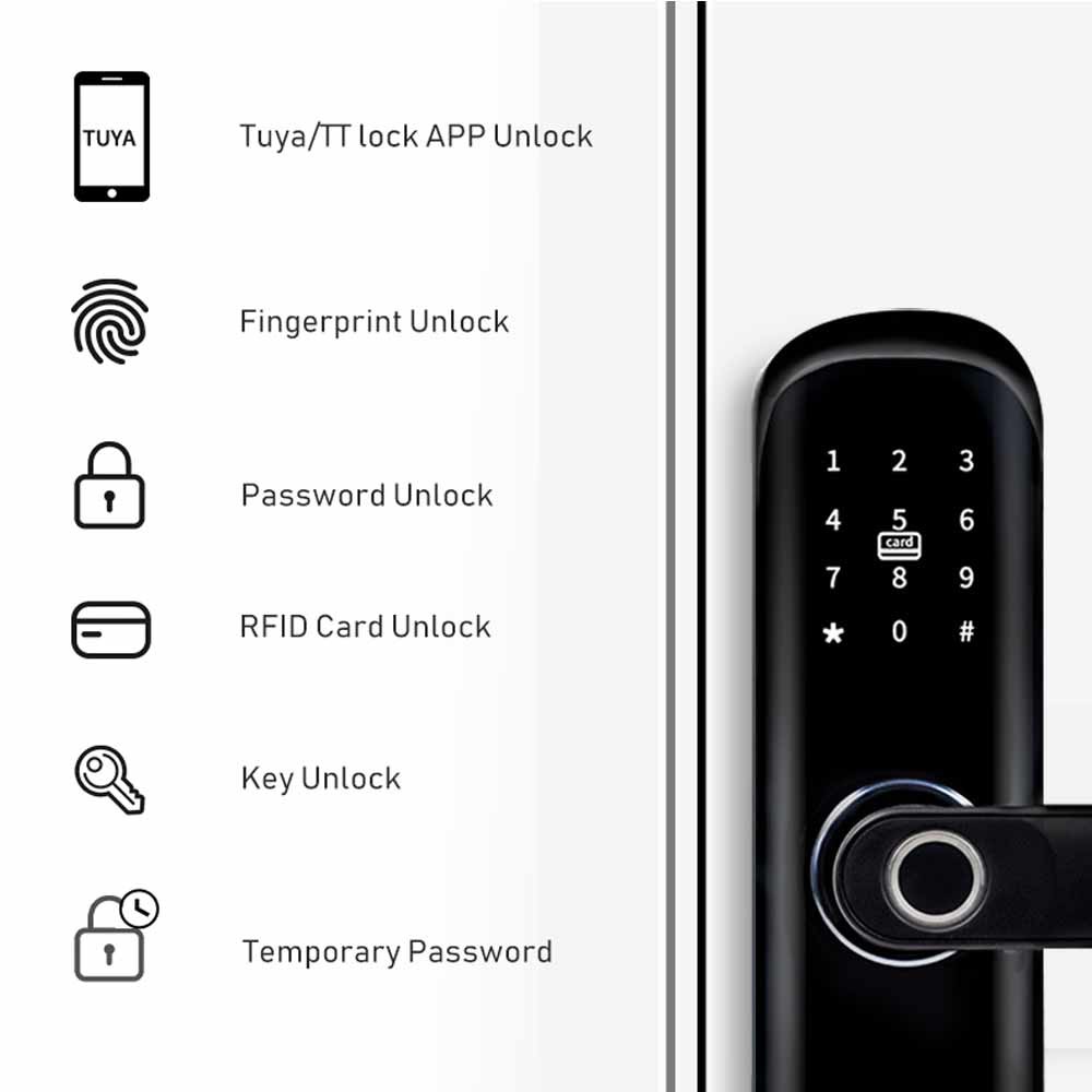 يحتوي على نظام إدارة مناسب و 6 طرق لإلغاء القفل: فتح بصمة الإصبع ، وإلغاء تأمين تطبيق BLE ، وإلغاء تأمين WiFi عن بُعد ،فتح كلمة المرور / رقم التعريف الشخصي ، فتح البطاقةومفاتيح ميكانيكية Unock ، ستلبي جميع احتياجاتك حول القفل الذكي ، مع إدارة التطبيقات المتقدمة ، عبر WiFi أو BLE لتوصيل القفل الذكي بهاتفك الذكي ، ويمكنك إدارة قفل الباب الذكي في أي مكان وزمان.